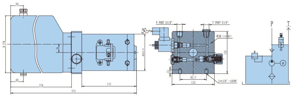 Remarks: Please consult our sales engineer for the different pump displacement, motor power or tank capacity.