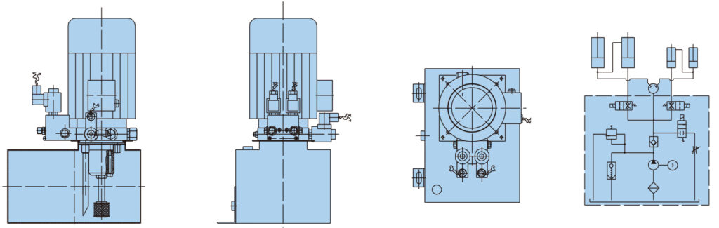Remarks: Please consult our sales engineer for the different pump displacement, motor power or tank capacity.