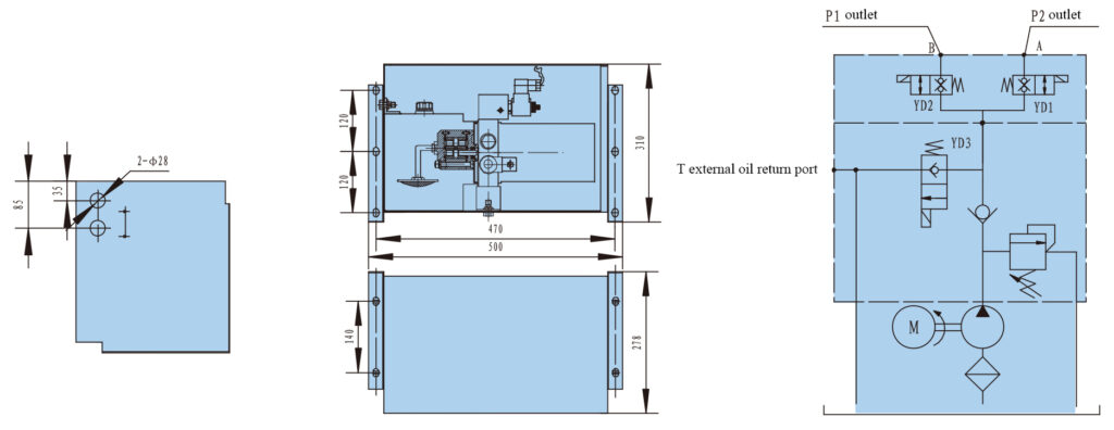 Remarks: Please consult our sales engineer for the different pump displacement, motor power or tank capacity.